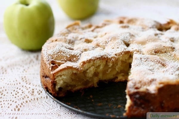 яблоки, сахар-песок, мука пшеничная , яйцо куриное, масло сливочное 72%, пищевая сода, ванилин