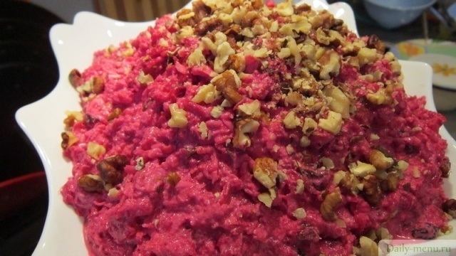 свекла отварная, яблоки, сметана 10,0% жирности, орех грецкий