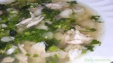 вода, минтай, картофель, лук репчатый, укроп обыкновенный, лук зеленый, лавровый лист, соль поваренная пищевая