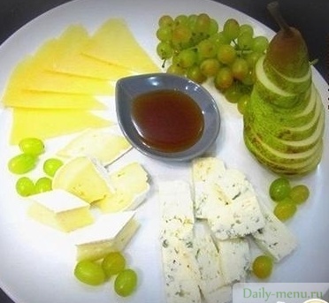 груша, виноград, сыр моцарелла, сыр российский, сыр гауда, сыр ламбер, сыр маасдам, мёд натуральный