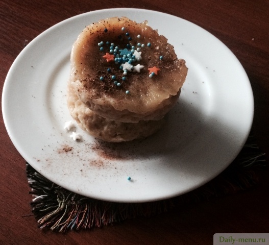 яйцо куриное, молоко 2,5% , банан, овсяные хлопья геркулес, мед натуральный (мёд), разрыхлитель теста