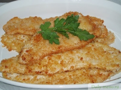 индейка, грудка без кожи, сухари панировочные, яйцо куриное, масло подсолнечное, соль поваренная пищевая