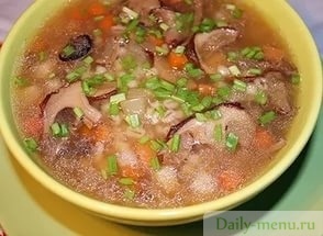 вода, картофель, шампиньоны, крупа перловая, лук репчатый, морковь, масло подсолнечное, петрушка, соль поваренная пищевая