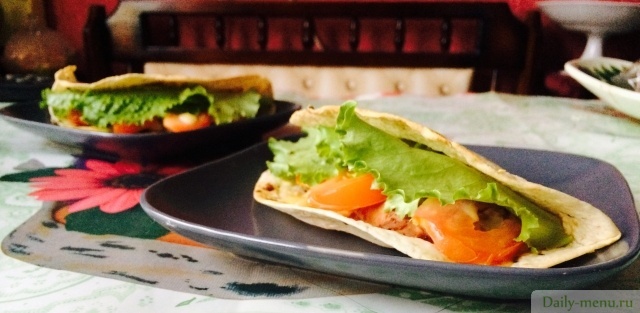индейка, грудка без кожи, mission deli пшеничные лепёшки со злаками, помидоры, фасоль белая первым делом, соевый соус, салат, чеснок, сыр брест-литовск легкий 35%, перец черный молотый