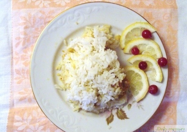 филе минтая, рис отварной, лук репчатый, морковь, масло подсолнечное, масло сливочное 72%, сок лимонный