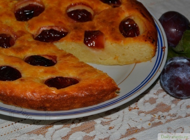 мука пшеничная берендеевка, кефир 1% жирности, масло сливочное 72%, слива, сахар-песок, яйцо куриное, пищевая сода