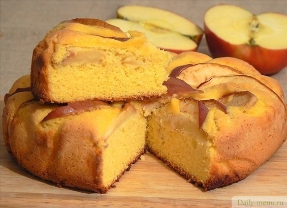 яблоки, яйцо куриное, мука кукурузная, сахар-песок, масло подсолнечное, разрыхлитель теста, ванилин