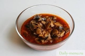 шампиньоны, лук репчатый, томатная паста, масло подсолнечное, чеснок, тимьян, соль поваренная пищевая