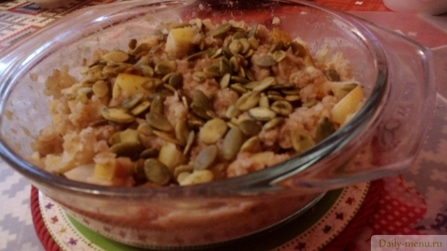 вода, молоко 3,2% , гречневые хлопья нордик, яблоки, изюм, семя тыквы, масло сливочное 82%
