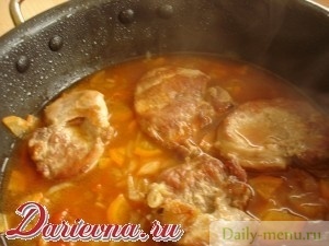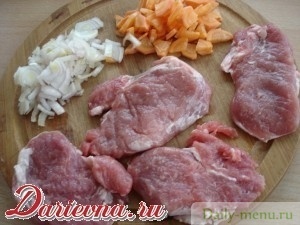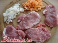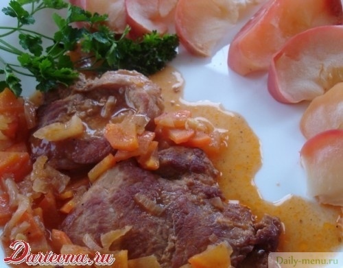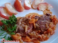 свинина вырезка, яблоки, вода, морковь, лук репчатый, томатная паста, масло подсолнечное, чеснок, соль поваренная пищевая, перец черный молотый