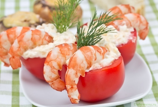 Фаршированные помидоры с креветками. Фото: shutterstock