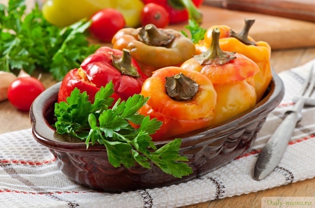 перец болгарский красный, вода, фарш из курицы, сыр пармезан, рис белый, лук репчатый, соль поваренная пищевая, чеснок, перец черный молотый