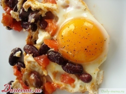 яйцо куриное, помидоры, фасоль красная, консервированная, сыр твердый (маасдам), масло подсолнечное