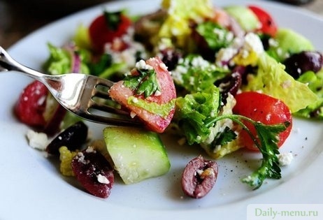 редис, маслины без косточек, сыр адыгейский 45% жирности, перец болгарский красный, томат грунтовый, капуста пекинская, салат, масло оливковое, лук зеленый, петрушка, укроп обыкновенный, соль поваренная пищевая