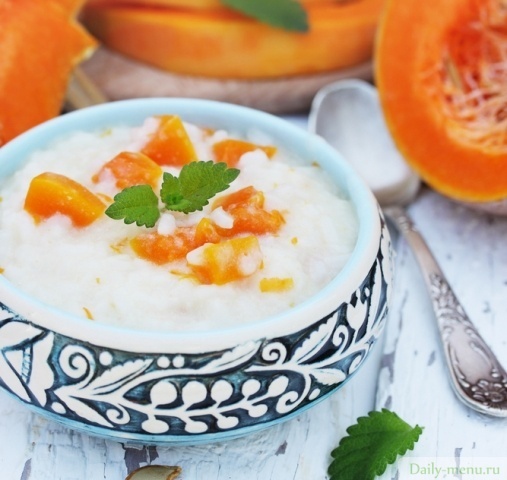 молоко 2,5% , рис белый, сливки 9% жирности, тыква, сахар-песок, мята свежая, ванильный сахар