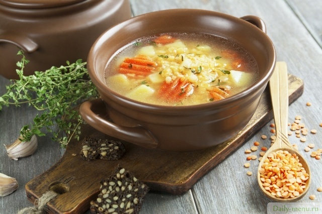 вода, свинина грудинка мякоть, картофель, чечевица зерно, сливки 9% жирности, лук репчатый, мука пшеничная , морковь, укроп и другие пряные травы, соль поваренная пищевая, перец черный молотый