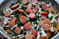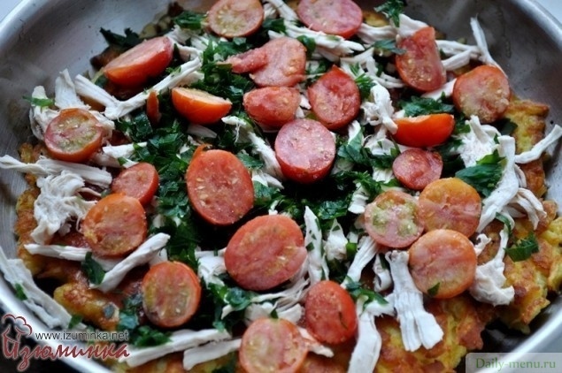 картофель, куриная грудка, без кожи, помидоры, яйцо куриное, сыр моцарелла, мука пшеничная , петрушка, соус томатный острый, масло оливковое, соль поваренная пищевая, перец черный молотый