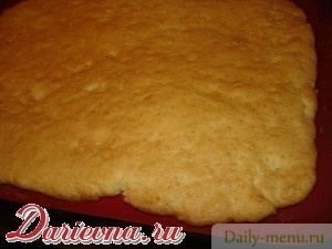 2. Тесто сразу же выложить на противень и разровнять руками, смоченными водой.