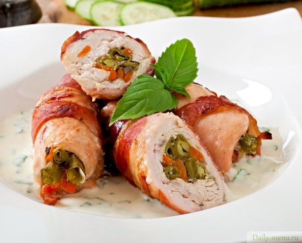 Куриные рулеты с оливковой начинкой. Фото: depositphotos