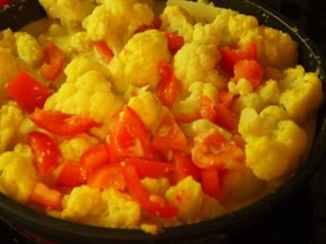 капуста цветная, помидоры, сметана 10,0% жирности, сыр голландский, масло подсолнечное