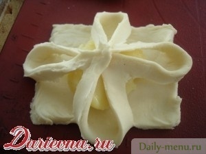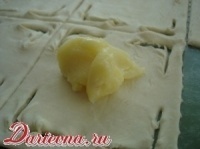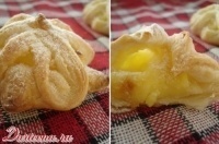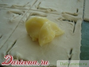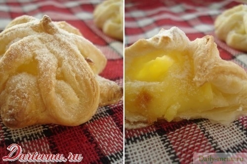 слоеное тесто бездрожжевое, молоко 2,5% , сахар-песок, яичный желток куриный, мука пшеничная , сахарная пудра, ванилин