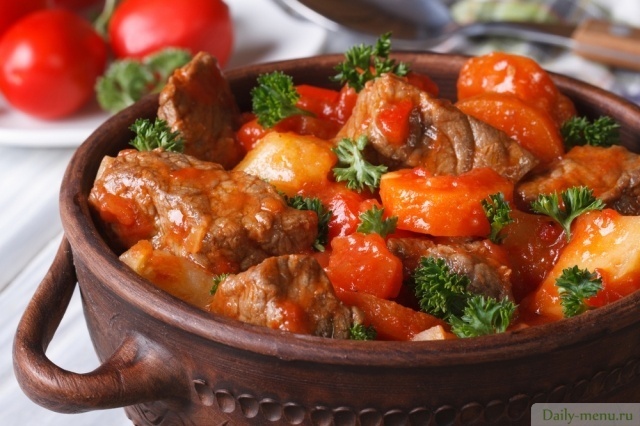 овощной бульон, свинина грудинка мякоть, помидоры, перец болгарский красный, лук репчатый, масло оливковое, томатная паста, чеснок, петрушка, сахар-песок, перец черный молотый, соль поваренная пищевая
