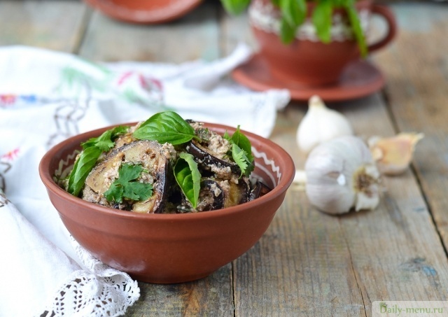 баклажаны, вода, орех грецкий, чеснок, кинза, масло оливковое, уксус 9%, базилик свежий, сахар-песок, соль поваренная пищевая, хмели-сунели