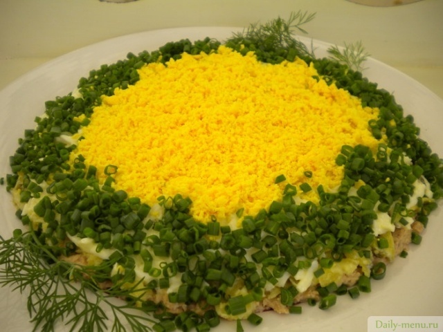 лук репчатый, картофель, морковь, сайра в масле консервы, майонез , яйцо куриное, укроп и другие пряные травы