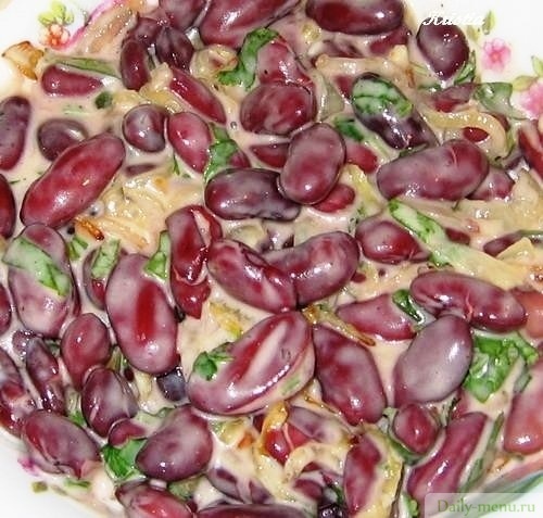 фасоль красная, консервированная, колбаса полукопченая таллинская, огурец грунтовый, майонез , укроп и другие пряные травы