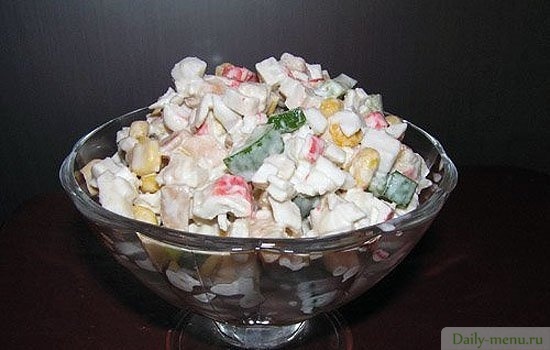 майонез , кукуруза консервы, крабовые палочки, рис белый, яйцо куриное, огурец грунтовый, помидоры, лук репчатый, чеснок, перец черный молотый