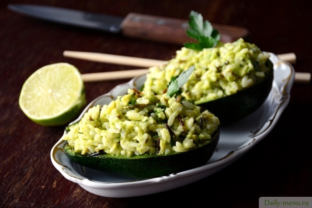 вода, авокадо, рис длиннозёрный, сок лайма, семя тыквы, петрушка, цедра лимонная, соль поваренная пищевая