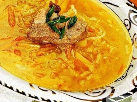 вода, свинина лопаточная часть, картофель, капуста белокочанная, морковь, лук репчатый, перец болгарский зеленый, томатная паста, петрушка, соль поваренная пищевая, масло подсолнечное, бульон грибной роллтон, лавровый лист