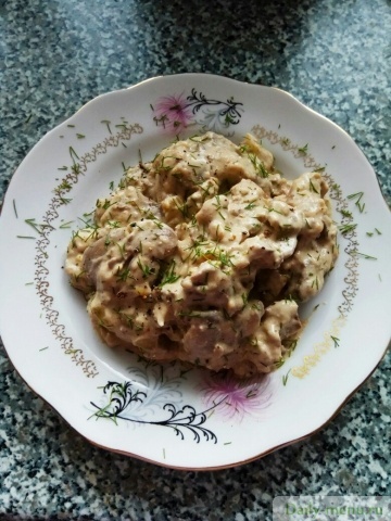 печень куриная, сливки, 20,0% жирности, лук репчатый, вода, мука пшеничная , масло подсолнечное, соль поваренная пищевая, перец черный молотый