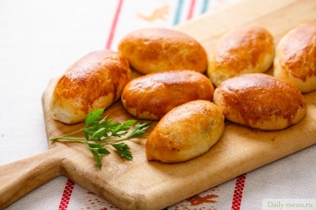 тесто пирожковое, картофель, шампиньоны, лук репчатый, масло топленое, масло сливочное 72%, соль поваренная пищевая