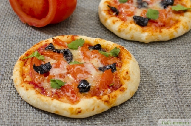 классическое тесто для пиццы, помидоры, сыр моцарелла, маслины средние и мелкие, соус томатный острый, травы итальянские, смесь