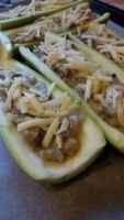 кабачок, вода, грибы шампиньоны свежие, сыр гауда, лук репчатый, сметана простоквашино 15%, мука рисовая