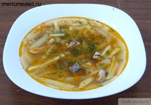 вода, картофель, сельдь среднесоленая, лук репчатый, томатная паста, морковь, масло подсолнечное, соль поваренная пищевая, перец черный горошек, лавровый лист