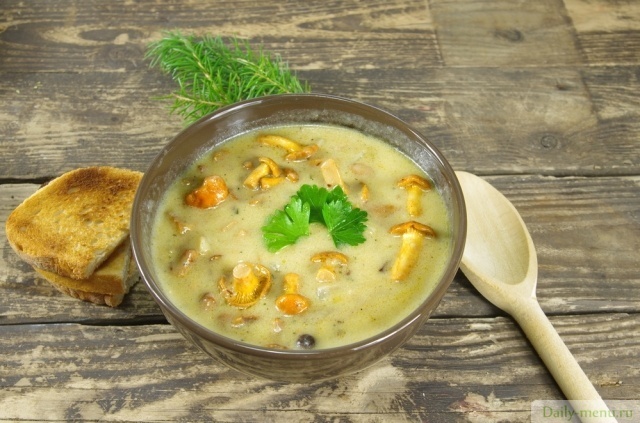 вода, сливки, 10,0% жирности, картофель, лисички, лук репчатый, масло сливочное 72%, соль поваренная пищевая