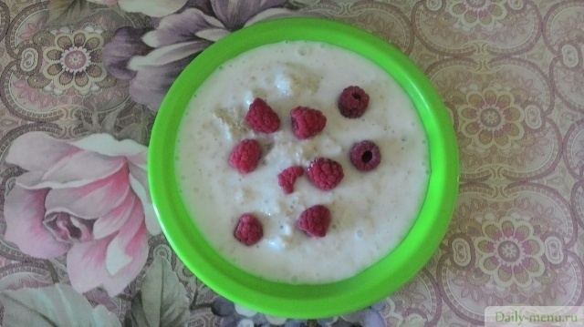 кефир 1% жирности, овсяные хлопья геркулес, мед натуральный (мёд), малина