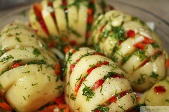 картофель, перец болгарский красный, масло сливочное 72%, чеснок, соль поваренная пищевая, перец черный молотый
