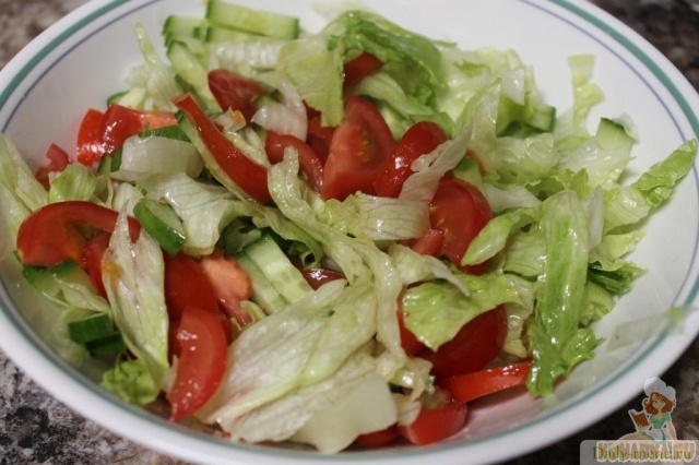 салат айсберг, огурец грунтовый, помидоры, масло льняное