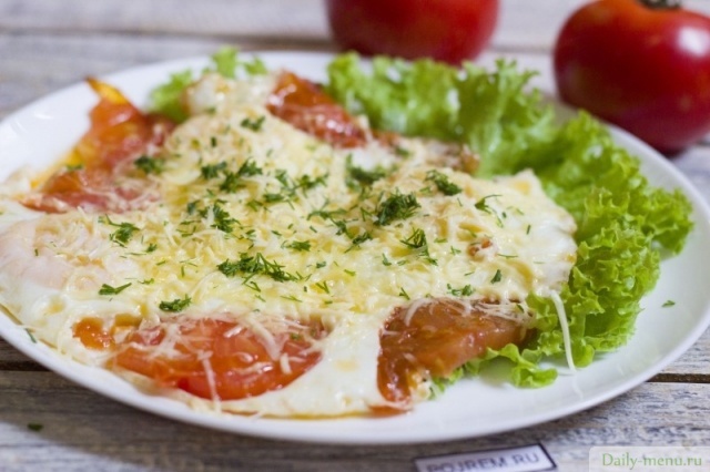 яичный белок куриный, помидоры, сыр твердый (маасдам), масло растительное, укроп и другие пряные травы