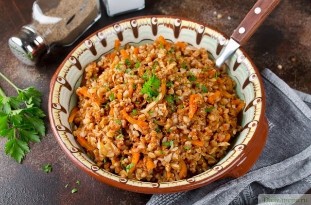 Гречневая каша с куриным фаршем и овощами