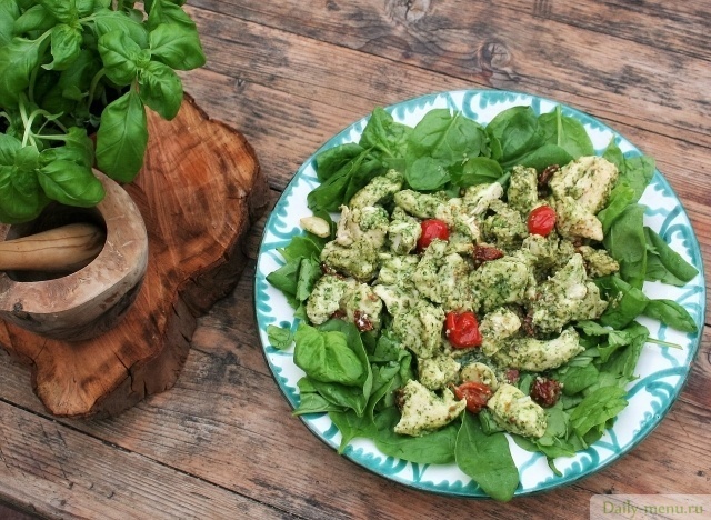 курица филе, без кожи, сливки, 10,0% жирности, помидоры черри, шпинат, масло оливковое, мука пшеничная , чеснок, соль поваренная пищевая, прованские травы, перец черный молотый, орех мускатный
