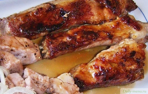 свиные ребрышки, вода, лук репчатый, перец черный молотый, соль поваренная пищевая