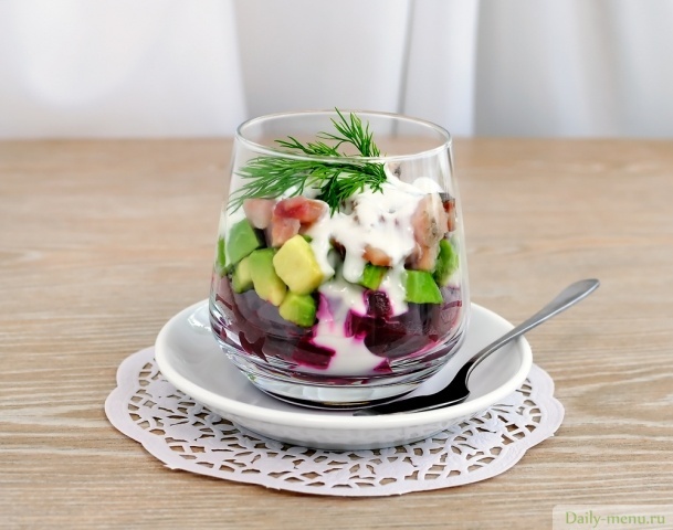 Салат из сельди с авокадо и свеклой