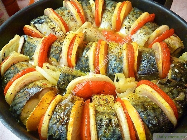 Запеченная скумбрия с овощами