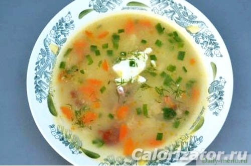 вода, картофель, белый гриб, морковь, лук зеленый, укроп и другие пряные травы, крупа пшено, масло подсолнечное, соль поваренная пищевая