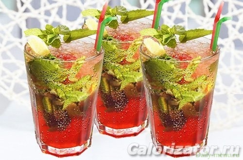 вода минеральная, земляника, клубника, сок лимонный, сахар-песок, базилик свежий, соль поваренная пищевая
