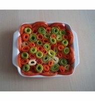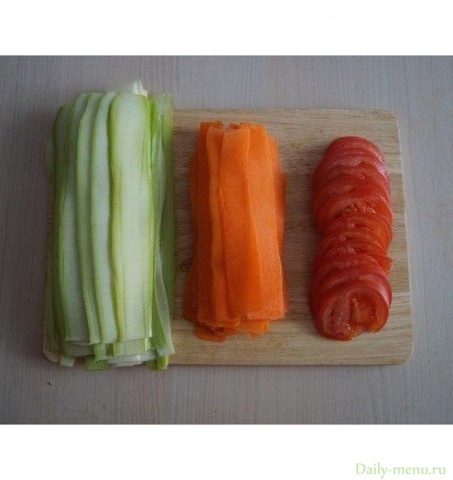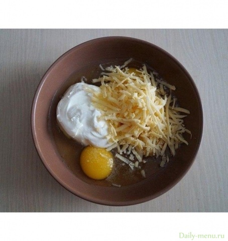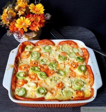 кабачок, морковь, помидоры, сметана 15,0% жирности, яйцо куриное, сыр полутвердый (голландский), чеснок, соль поваренная пищевая
